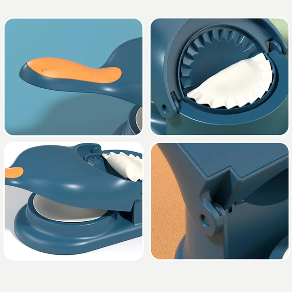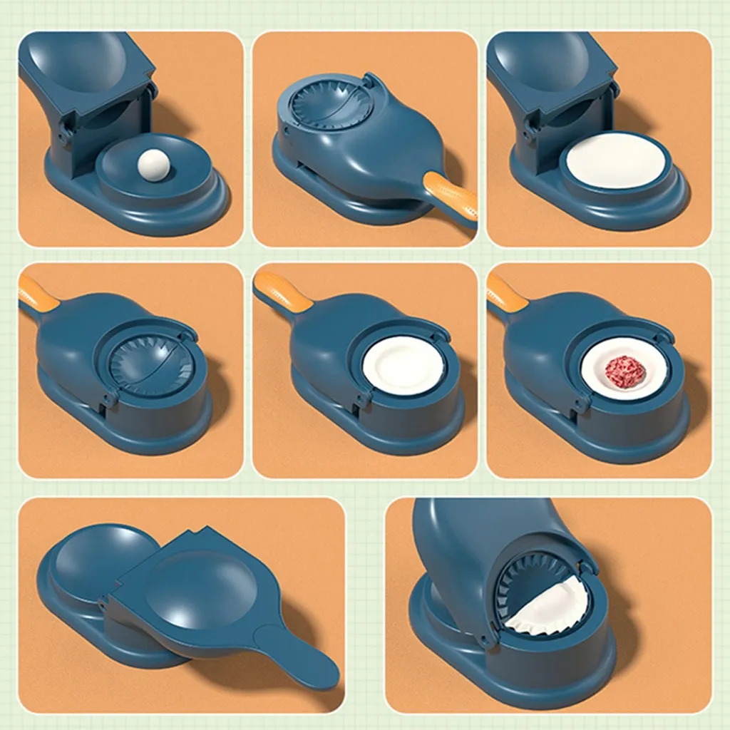 【Schnell zubereitete Knödel】 – Legen Sie den Teig auf die Knödelmaschine, ziehen Sie den Griff herunter und drücken Sie auf die Knödelhaut. Legen Sie den Teig auf die Oberfläche, fügen Sie Ihre Lieblingsfüllungen hinzu, schließen Sie dann die Form und drücken Sie, um eine perfekte Verpackung zu versiegeln.