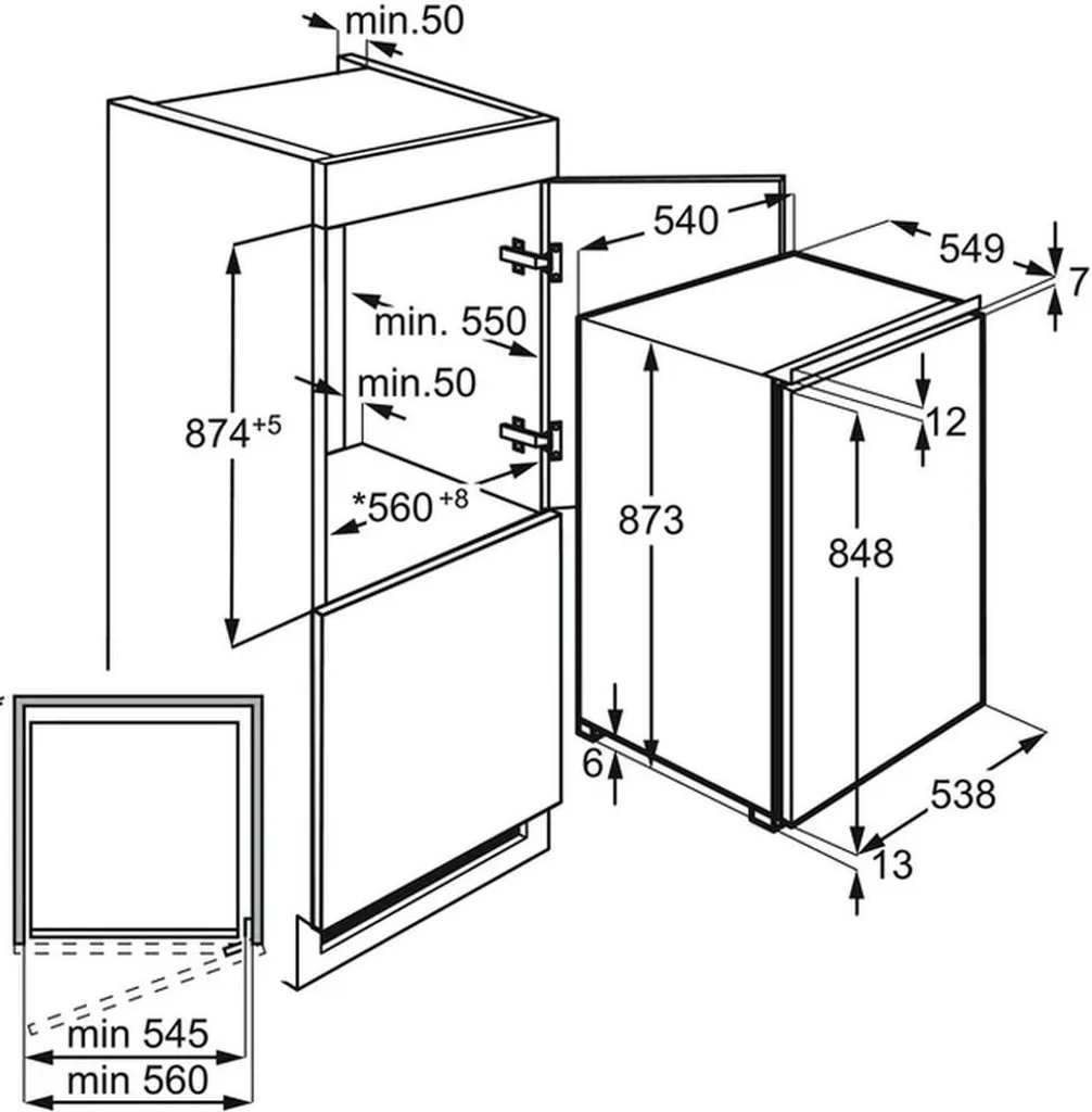 - Einbaumaße HxBxT (mm): 880x560x550