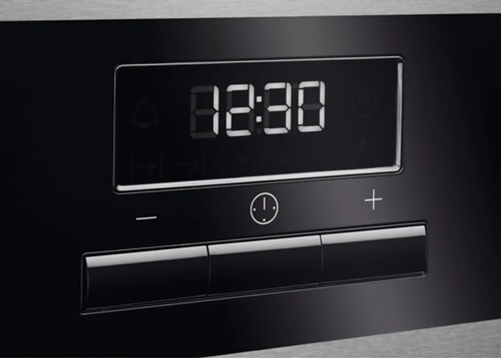 Die Elektronikuhr bietet Ihnen auf einen Blick eine komplette Übersicht über den Status Ihres Gerichts. Auf dem übersichtlichen Display können Sie einen Alarm einstellen, die bis zum Ende des Garvorgangs verbleibende Zeit direkt ablesen und den Timer mit Genauigkeit und Präzision programmieren.