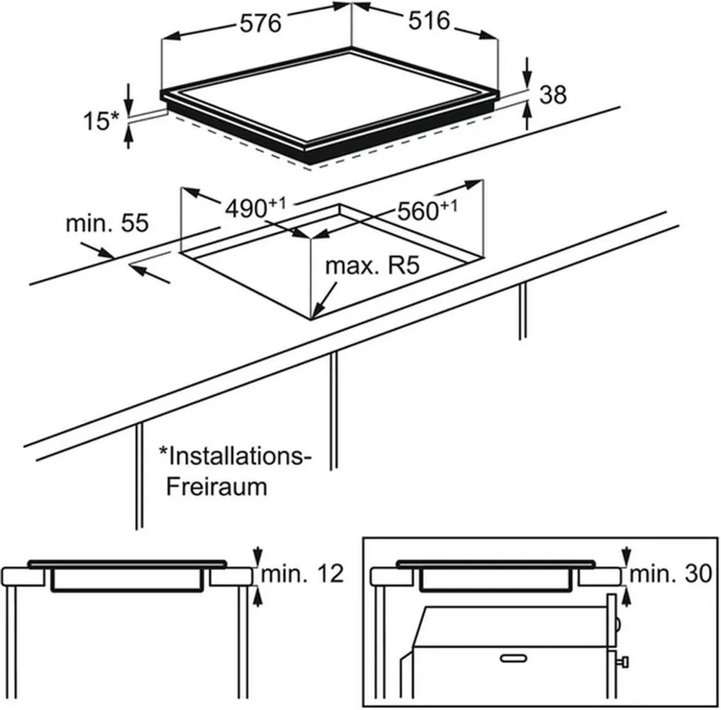 - Installation: Herdgebundenes Kochfeld
