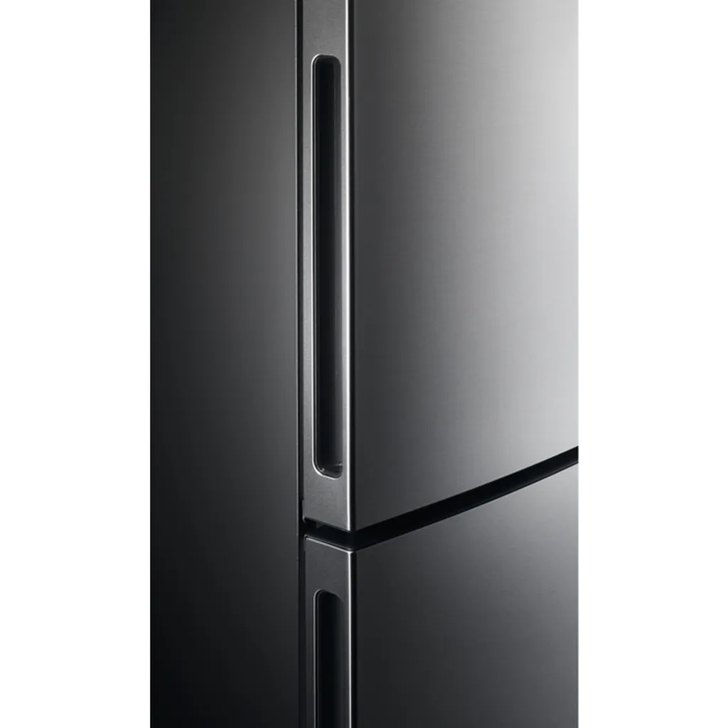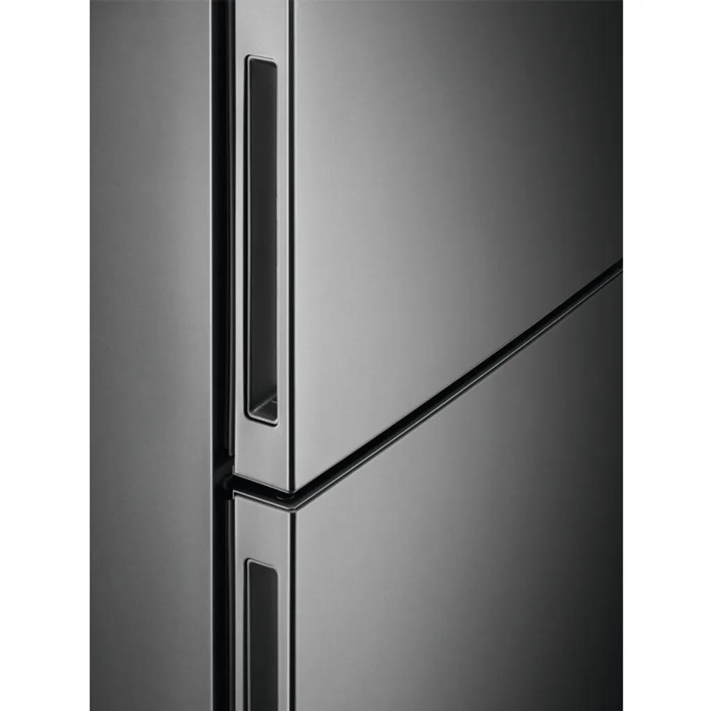 Die freistehende Kühl- und Gefrierkombination »RCB732E5MX« von AEG Electrolux ist ein energiesparendes Gerät. Das Gerät hat die Maße 59,5 x 186 x 65 cm (B/H/T). Eisbildung wird im Gefrierfach durch die No Frost-Funktion verhindert – so muss das Gerät nie wieder abgetaut werden. Das Gerät ist ausgestattet mit drei Gefrierschubladen und zwei Gemüseschubladen. Die Temperatur im Gerät wird auf dem Display angezeigt, das außen installiert ist. Die drei Ablageflächen aus Glas, darunter zwei höhenverstellbar, bieten viel Platz für Lebensmittel. Schnell griffbereit sind Lebensmittel in den fünf Türablagen. Durch die Frostmatic-, COOLMATIC- und Schnellgefrier-Funktionen lassen sich Nahrungsmittel besonders schnell kühlen und einfrieren. Feuchtigkeit und Temperatur werden mit der ProFresh-Funktion im gesamten Kühlraum kontrolliert und geregelt. Das sorgt für ideale Lagerbedingungen. Mit dem TwinTech-Kühlsystem arbeiten Kühl- und Gefrierfächer unabhängig voneinander, um die optimale Temperatur und Feuchtigkeit für frische oder gefrorene Lebensmittel aufrecht zu erhalten. Liegt eine Fehlfunktion vor, gibt die Kühl- und Gefrierkombination ein optisches und akustisches Warnsignal. Alles im Blick hat man außerdem dank der LED-Innenbeleuchtung. Die Möglichkeit der rechts- und linksseitigen Montage ist bei der Tür des Modells besonders beachtenswert. Die höhenverstellbaren Füße sind bei der Kühl- und Gefrierkombination »RCB732E5MX« auch zu nennen. Die »RCB732E5MX« von AEG Electrolux ist eine Kühl- und Gefrierkombination, die mit ihren Features überzeugt und genug Platz für Lebensmittel aller Art bietet.