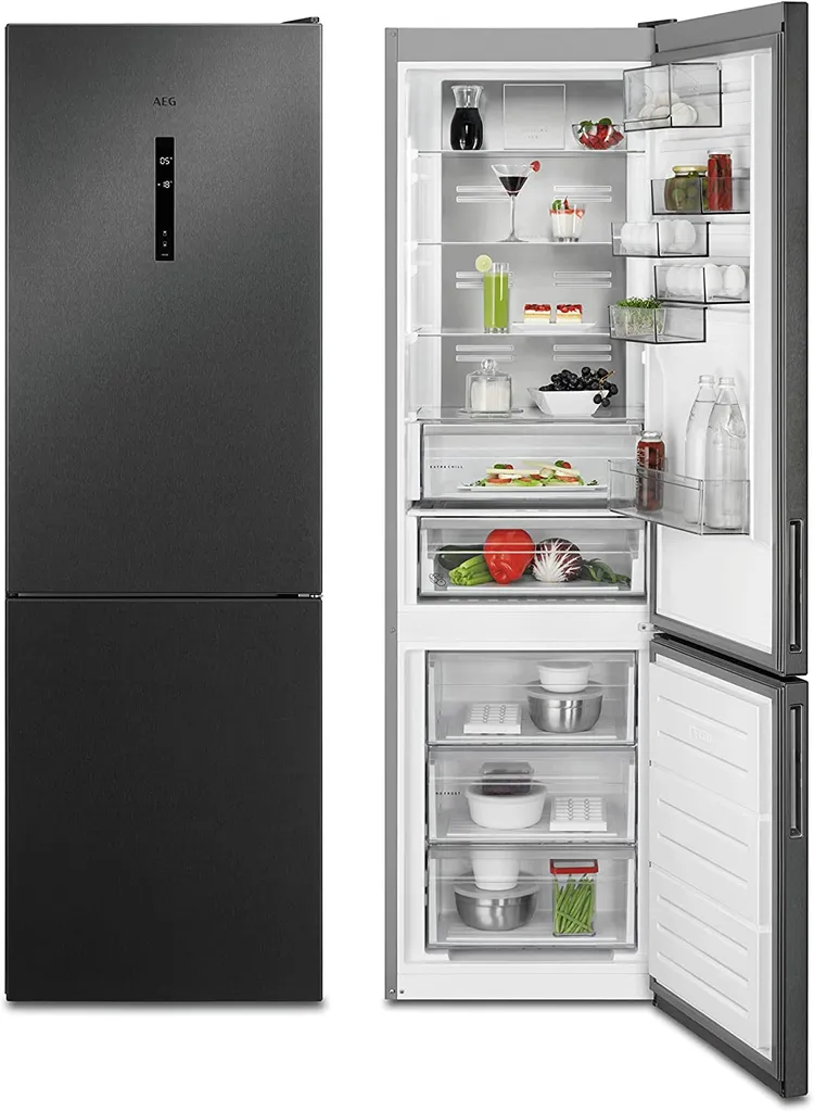 Hier wird dir in punkto Frische einiges geboten! Die Kühl-Gefrierkombination RCB736D5MB von AEG im ansprechenden Edelstahl Look hält was sie verspricht. Denn mit der 360° Cooling Technologie bleiben deine Lebensmittel einfach länger frisch. Ein innovatives Zirkulationssystem mit mehreren Luftkanälen, befördert konstant gekühlte Luft in jede Ecke. Deine gelagerten Nahrungsmittel bleiben haltbarer und unnötiges Wegwerfen von Einkäufen und Speisen lässt sich so vermeiden. Zudem eignet sich die ExtraChill Schublade besonders, um den Geschmack und die Textur von Fisch, Fleisch und Käse zu bewahren. Die separierte Schublade sowie eine konstante Zirkulation der Kaltluft stellen sicher, dass die Temperatur niedriger bleibt als im restlichen Kühlbereich. TwinTech sorgt außerdem für eine getrennte Luftzirkulation zwischen Kühl- und Gefrierraum. Die Kühl- und Gefrierfächer arbeiten unabhängig voneinander, um die optimale Temperatur und Feuchtigkeit für frische oder gefrorene Lebensmittel aufrecht zu erhalten. Besonders flexibel bleibst du dank CustomFlex®. Hier nutzt du den Stauraum der Tür optimal aus. Versetze und ordne einzelne Module schnell und leicht nach deinen Bedürfnissen. Klammern für Kräuter, Ablagen für Käse und sichere Regale für Milchprodukte, Saucen und Gewürze. Alles genau so eingeordnet, wie du es gerne möchtest.