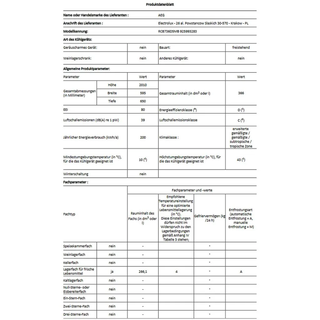 | Nutzinhalt (Kühlen) | 266 Liter | |