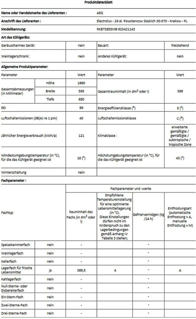 - Jährlicher Energieverbrauch in kWh: 121
