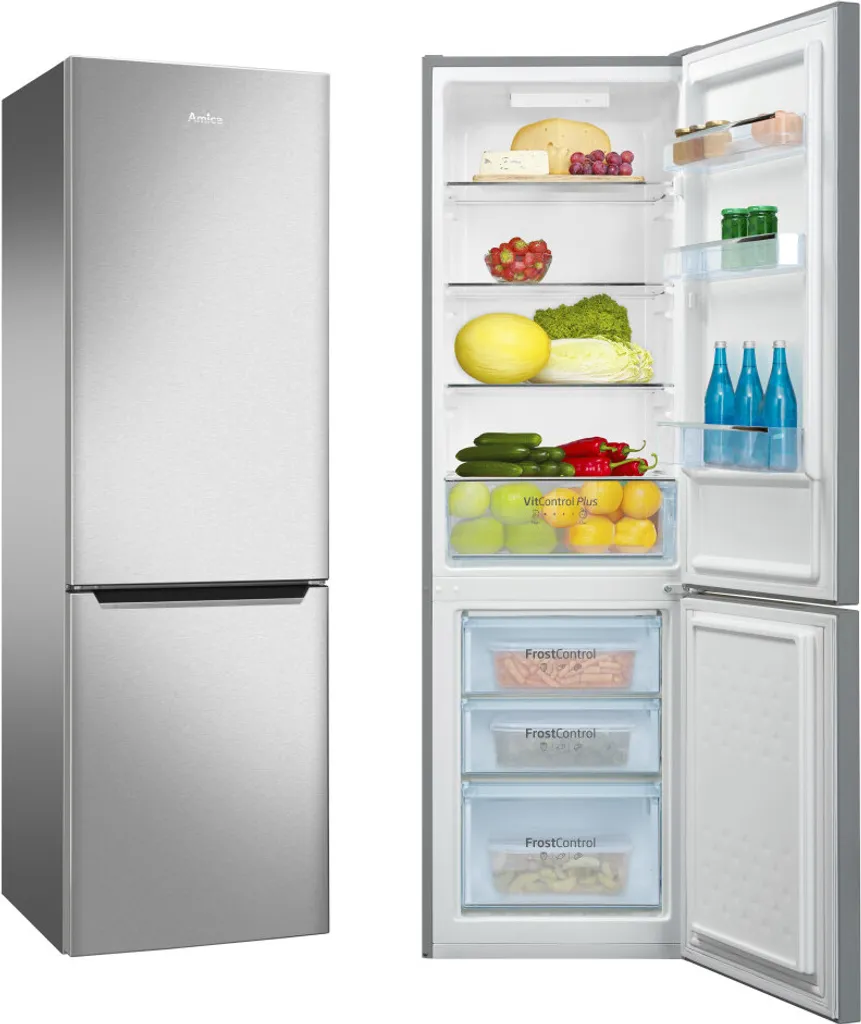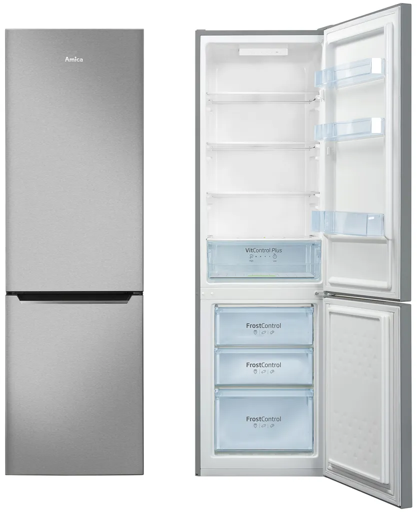 Amica VitControl Plus Line KGCL 387 150 E – Kühl-/Gefrierschrank – Bottom-Freezer – Breite: 54 cm – Tiefe: 55 cm – Höhe: 176 cm – 262 Liter – – Edelstahl-Optik