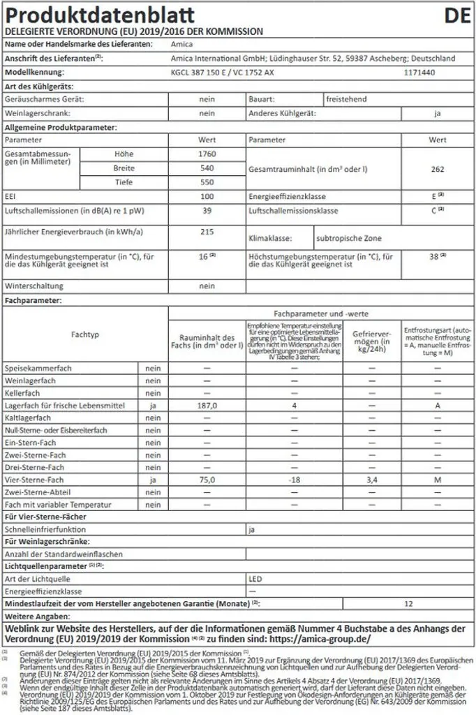 - Jahresenergieverbrauch in kWh: 215 kWh