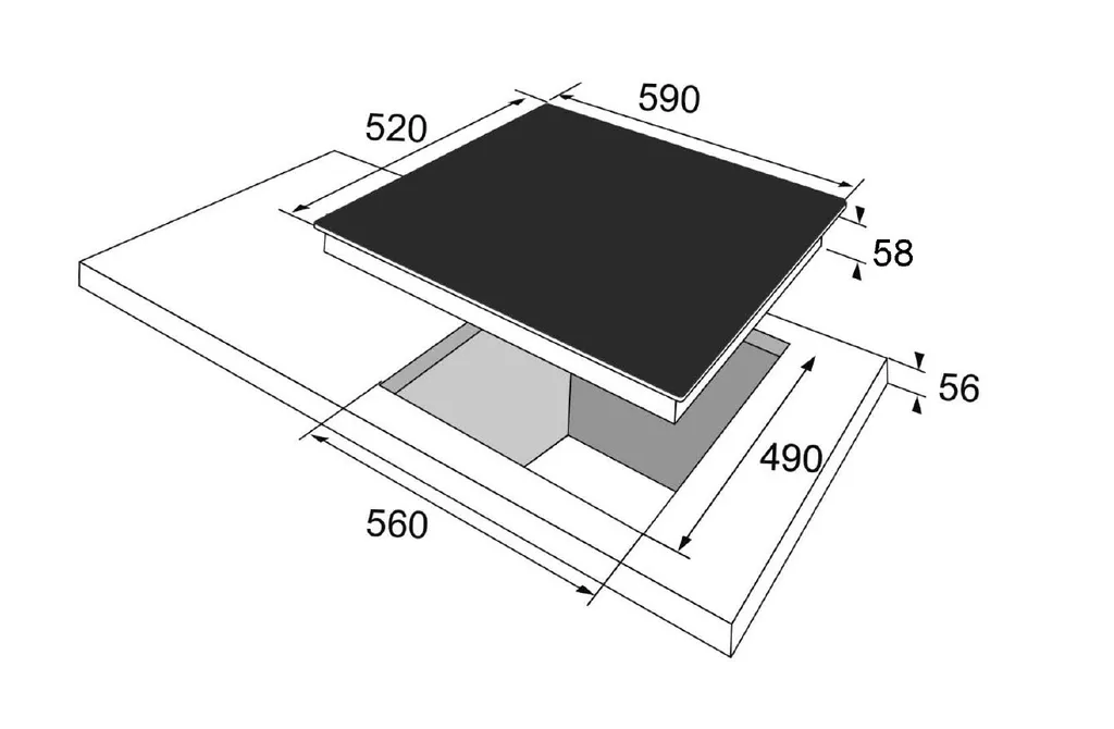 - Ausschnittmaße (B x T): 560 x 490 mm