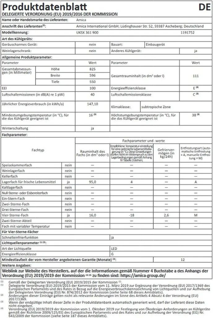 - Jahresenergieverbrauch in kWh: 147