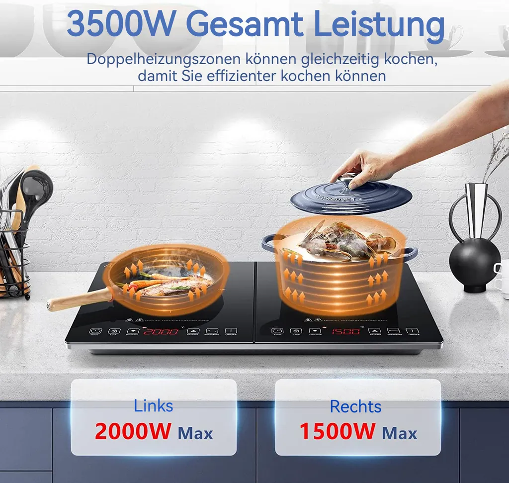 🍣【Zwei Gerichte bequem zusammen zubereiten】 Ausgestattet mit zwei unabhängigen Heizzonen können Sie mit dem Doppelinduktionskocher jedes einzeln einstellen oder zusammen verwenden, um die Kochzeit zu verkürzen. Lassen Sie mehr Zeit mit der Familie genießen. Es ist auch ein netter Kochpartner bei einer Wochenendparty, Festivals usw.