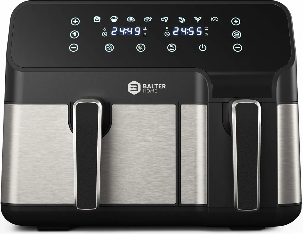 BALTER Heißluftfritteuse Mit Doppelkammer HL-850D, 9L (5,5L + 3,5L), 2 Speisen Gleichzeitig, 9 Programme , Friteuse Ohne Öl, Dual Zone, Airfryer, Heis