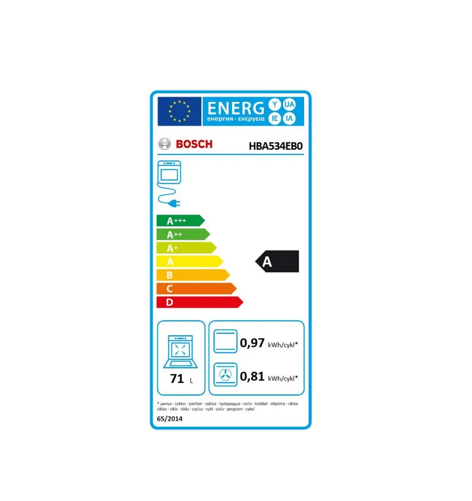 - Energieeffizienzklasse (EU Nr. 65/2014): A (Energieeffizienzskala von A +++ bis D)