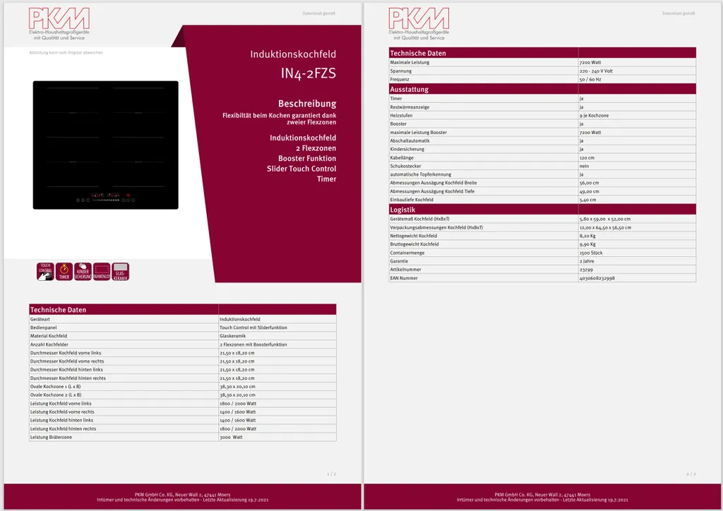 - Anzahl Kochfelder: 2 Flexzonen (mit Boosterfunktion)