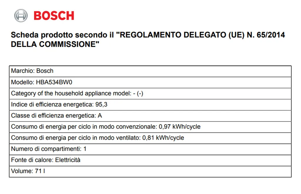 - Energieeffizienzklasse (EU Nr. 65/2014): A (Energieeffizienzskala von A +++ bis D)