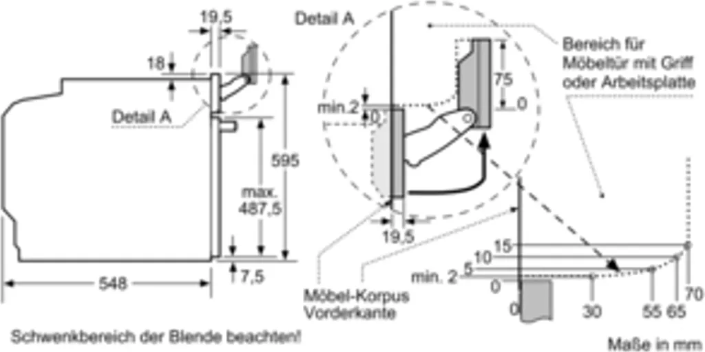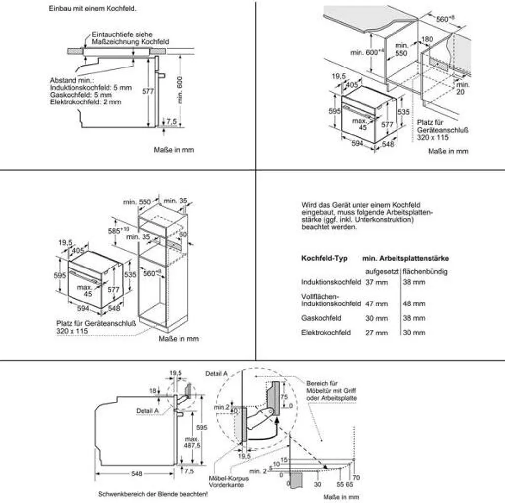 - Nischenmaße (HxBxT): 585 – 595 x 560 – 568 x 550 mm