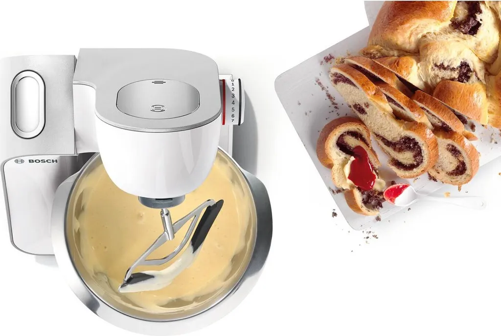 - Die starke Küchenmaschine für häufiges Kochen und Backen. Besonders einfache Verarbeitung auch von großen Mengen von bis zu 1 kg Mehl plus Zutaten dank kraftvollem Motor mit 1.000 Watt.