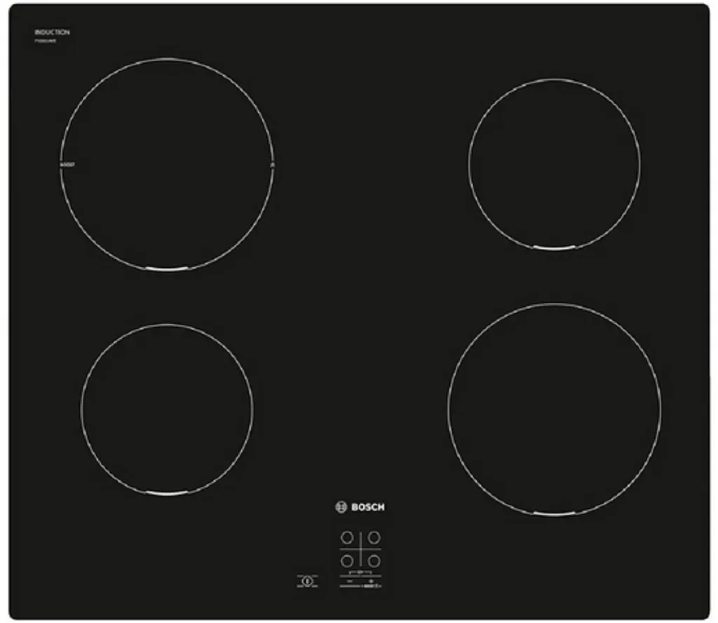 Kurze zusammenfassende Beschreibung Bosch Serie 2 PUG611AA5E Kochfeld Schwarz Arbeitsplatte 60 cm Zonen-Induktionskochfeld 4 Zone(n):