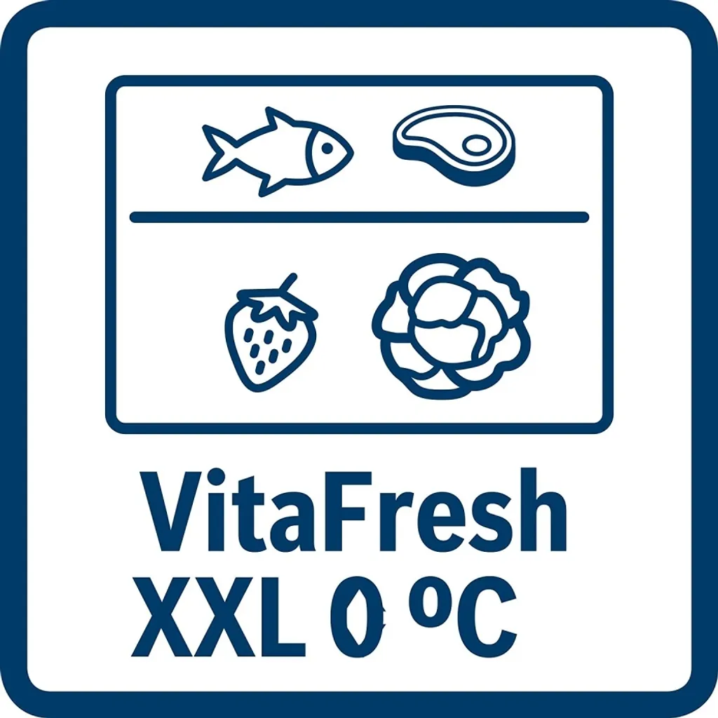 – VitaFresh XXL <0°C>: extragroße Schubladen mit Feuchtigkeitsregulierung für länger frische Lebensmittel.