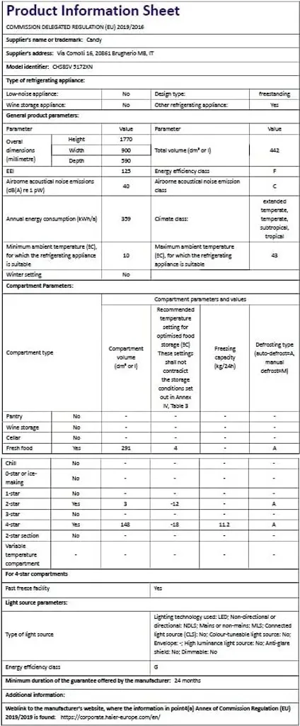 | Jährlicher Energieverbrauch | 359 kWh |