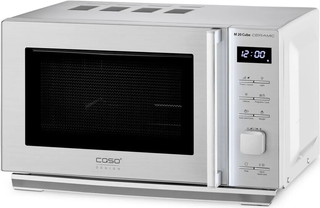 Caso M 20 Cube Ceramic Mikrowelle 20L 800W LED-Display Elektronik-Uhr Keramikboden mit Mikrowellenreflektor 10 einstellbare Leistungsstufen 8 Automatik-Programme Auftau-Programm Edelstahl-Innenraum Kindersicherung
