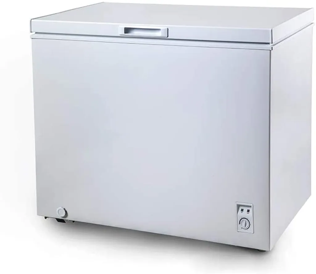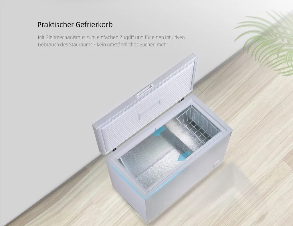 Die CHiQ Gefriertruhe FCF197D, mit stufenlos einstellbarem Thermostat verfügt zur einfachen Positionierung über leichtgängige Lenkrollen. Zur wandnahen und damit platzsparender Aufstellung wurden extra dünne Scharniere (nur noch 16 mm !) verbaut, welche mit Einzugsdämpfung ein bequemes Öffnen als auch sicheres Schliessen der Klappe in einem Winkel von 45 – 75 Grad für einen bequemen Zugriff in das Staufach ermöglicht. Der hocheffiziente Kompressor friert dabei bis zu 9 Kg Ihrer frischen Lebensmittel und Gefriertgut innerhalb von 24 Stunden sicher ein.