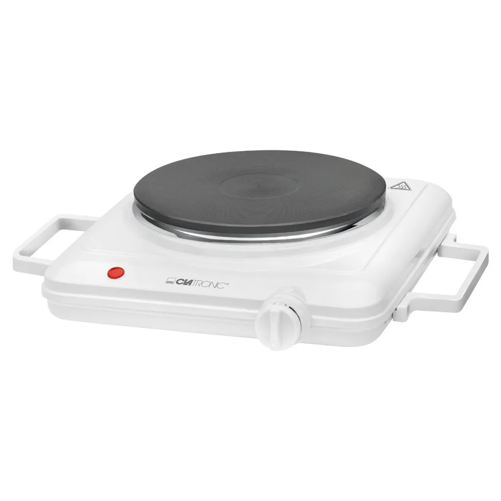 Clatronic EKP 35827 – Elektrische Einzel-Kochplatte mit einem Platten-Durchmesser von ca. 18 cm. Stufenloser regelbarer Thermostat mit Kontrollleuchte und hitzebeständige Lackierung.