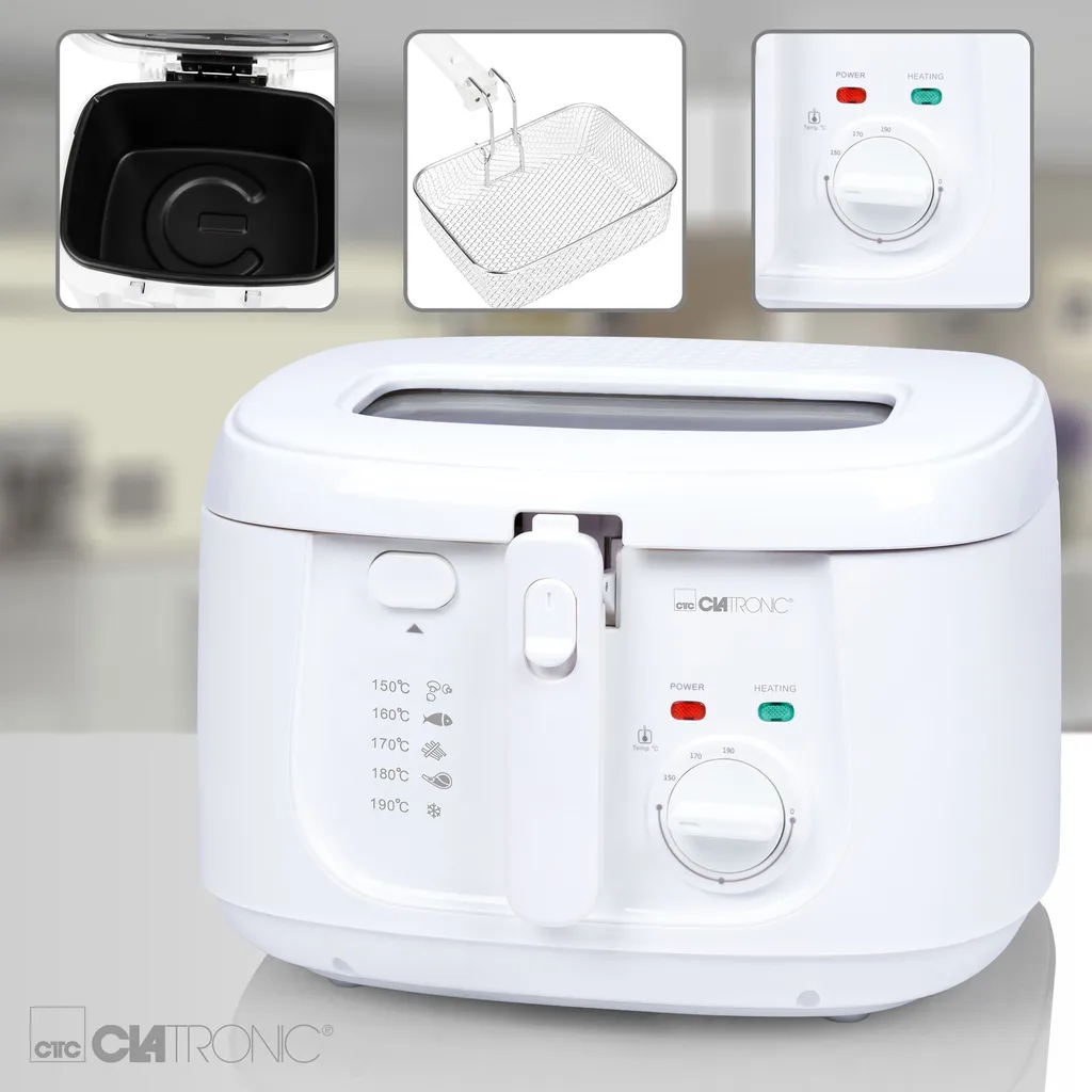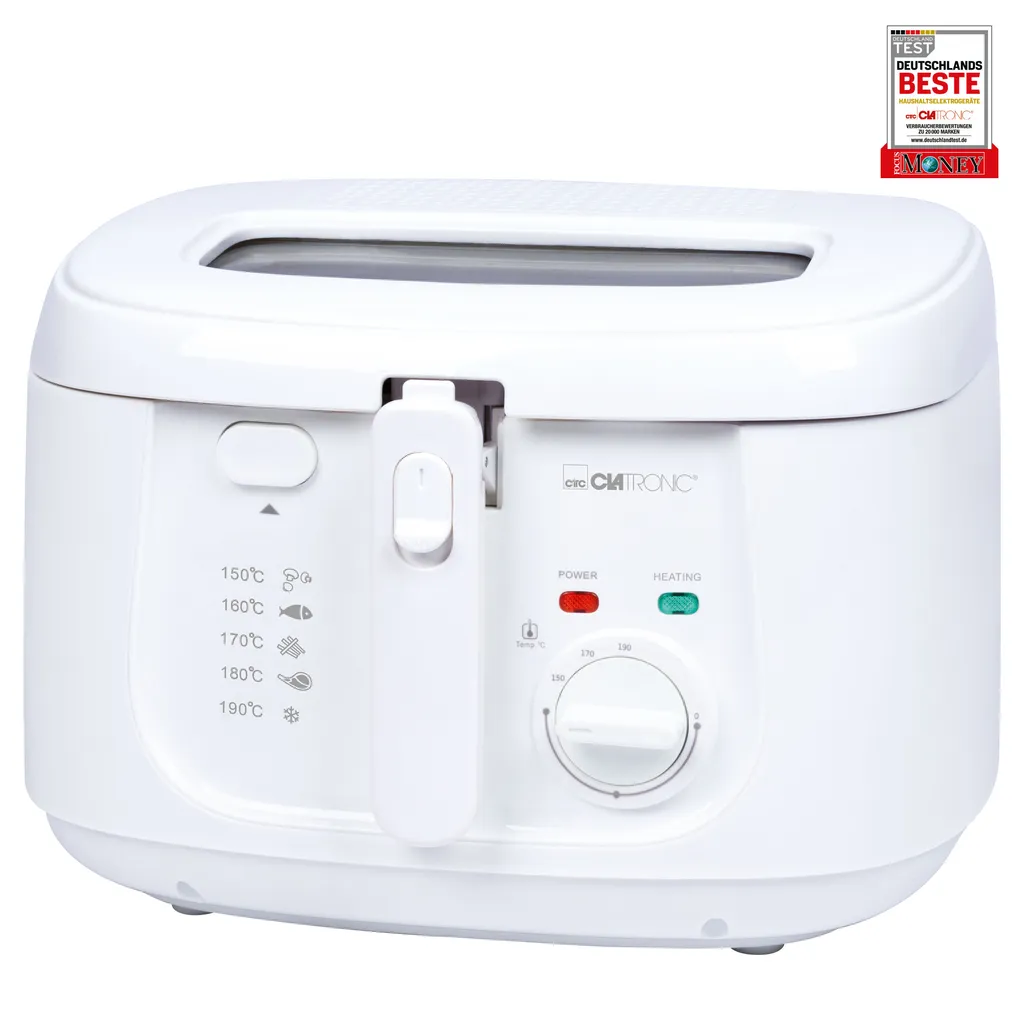 Top Features — Dank des stufenlos regulierbaren Thermostats können Sie die Temperatur (130°C-190°C) individuell nach Ihren Bedürfnissen einstellen. Das Sichtfenster im Deckel ermöglicht Ihnen stets den perfekten Überblick über Ihr Frittiergut. Zwei Griffmulden am Cool-Touch-Gehäuse der FR 3771 unterstützen einen sicheren und einfachen Transport. Zudem punktet die Fritteuse mit einem Geruchs- und Fettdunstfilter sowie Kontrollleuchten zur Information über Temperatur bzw. Betrieb des Gerätes.