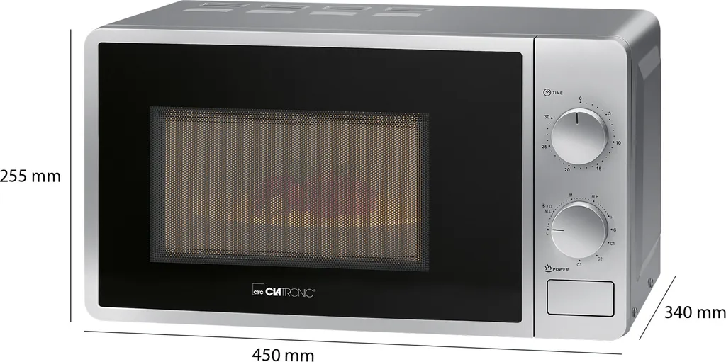 Clatronic Mikrowelle Mit Grill MWG 792, 700 Watt Mikrowellen- + 800 Watt Grillleistung, 30 Minuten-Timer Mit Endsignal, 20 Liter Garraum Mit Beleuchtung, Silber