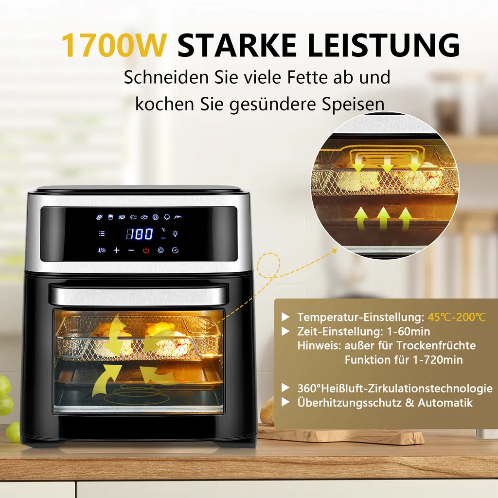 Weniger Öl, gesundes Essen, 360° Luftzirkulation und 1700W Motor