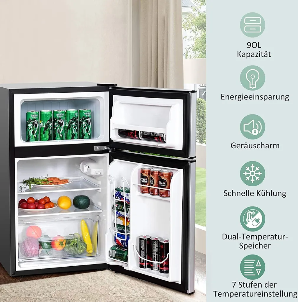 Dieser kleine Kühlschrank hat einen separaten Gefrierbereich, dessen Temperatur bis maximal -15℃ reicht. Durch die zwei Bereiche kann er flexibel verwendet werden.