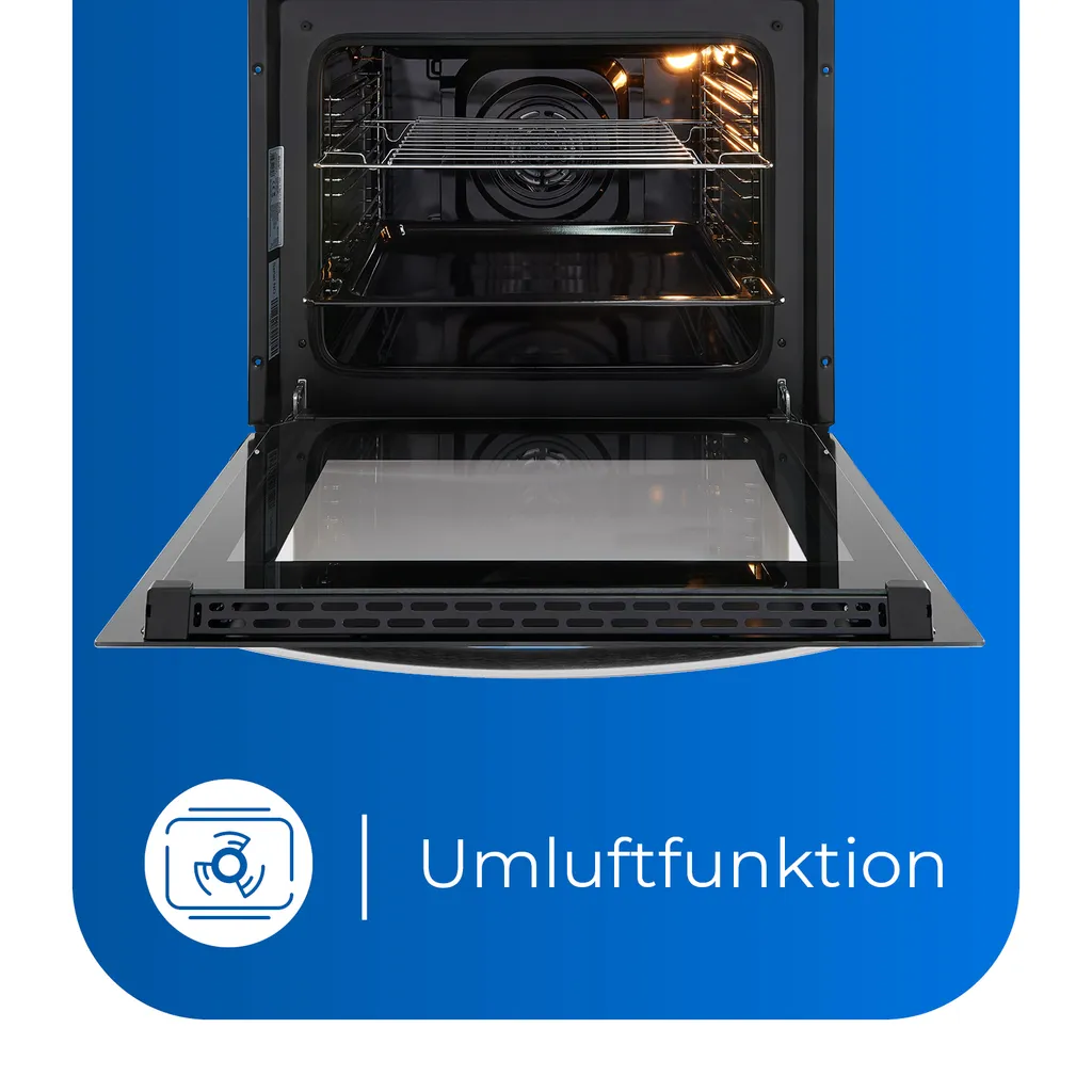 Das Einbauherd-Set EHE 185-1-Set in der Farbe Inoxlook von exquisit ist ein Eyecatcher für Ihre Küche.Das Gerät besitzt die Energieklasse A (Skala Energieeffizienzklasse A+++ bis D). Die Abmessungen des Einbauherds betragen 59,5 x 59,5 x 53,0 cm (Höhe/Breite/Tiefe). Das Kochfeld selber besitzt die Abmessungen 4,6 x 59,0 x 52,0 cm (Höhe/Breite/Tiefe). Das Gerät passt sich als Einbaugerät nahtlos in Ihre bestehende Küchenzeile ein. Das Kochfeld verfügt über 4 Kochplatten, die Sie individuell steuern können. Die Restwärmeanzeige zeigt Ihnen deutlich an, welche Kochzone heiß ist und verhindert somit schmerzhafte Verbrennungen. Der Backofen bietet Ihnen ein Garraum-Volumen von 58 Liter – reichlich Platz für die Zubereitung Ihres Gebäcks oder Speisen. Die einstellbare Temperatur liegt im Bereich von 50 – 250 °C. Insgesamt 10 Funktionen stehen zur Wahl zur Verfügung. Hierzu gehören: Ober- und Unterhitze, Unterhitze, Grillfunktion, Umluft, Pizzafunktion und mögliche Kombinationen einzelner Funktionen. Durch die komfortable Backofenbeleuchtung behalten sie Ihre Speisen durchgehend im Blick. Der integrierte digitale Timer unterstützt Sie sowohl beim Kochen, als auch beim Backen und sorgt dafür, dass Ihre Speise punktgenau zubereitet werden können.
