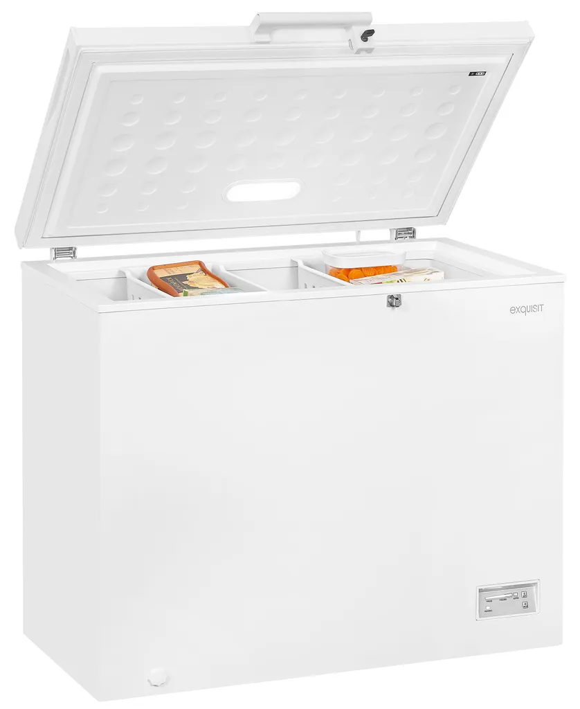 Die Gefriertruhe ermöglicht Ihnen das sorgenfreie Lagern über einen längeren Zeitraum. Insgesamt stehen Ihnen 254 l Nutzinhalt zur Verfügung. Das Gerät in der Farbe Weiß hat die Abmaße 85,0 x 96,0 x 70,5 cm (Höhe/Breite/Tiefe) und hat die Energieeffizienzklasse E (Skala Energieeffizienzklasse A bis G). Durch seine freistehende Bauart lässt es sich an jedem Ort aufstellen und in Betrieb genommen werden. Der 4*-Gefrierbereich verfügt über eine Kapazität von 254,0 l und bietet den idealen Ort für Eis, Tiefkühlpizza und alles andere. Eine spezielle Schnell-Gefrierfunktion sorgt dafür, dass Ihre Lebensmittel in kürzester Zeit eingefroren werden. Über ein gut lesbares Display haben Sie die gewünschte Temperatur jederzeit im Blick und können bequem einzelne Funktionen des Gerätes steuern.
