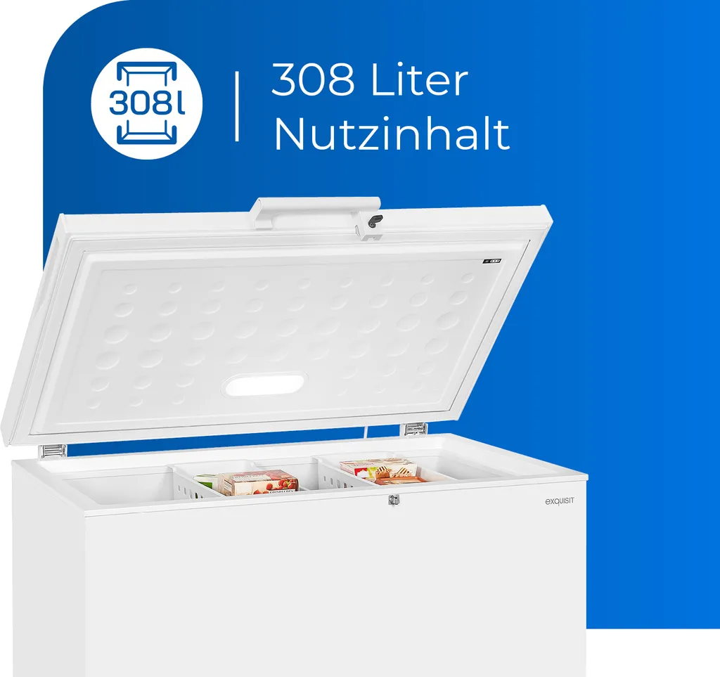 - 308 Liter Nutzinhalt – enorm viel Platz für Ihre Tiefkühlkost