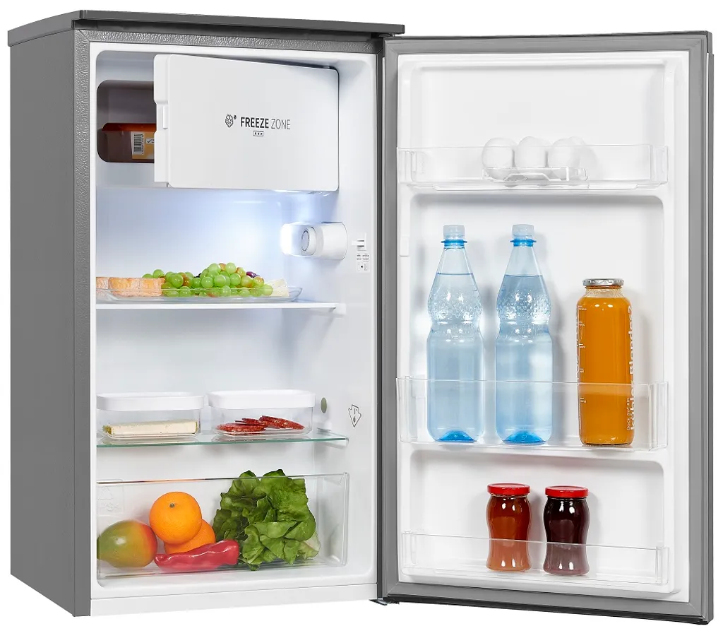 Exquisit KS117-3-010F Kühlschrank 82L silber LED-Beleuchtung Temperatureinstellung Gemüsefach (Skala A bis G)