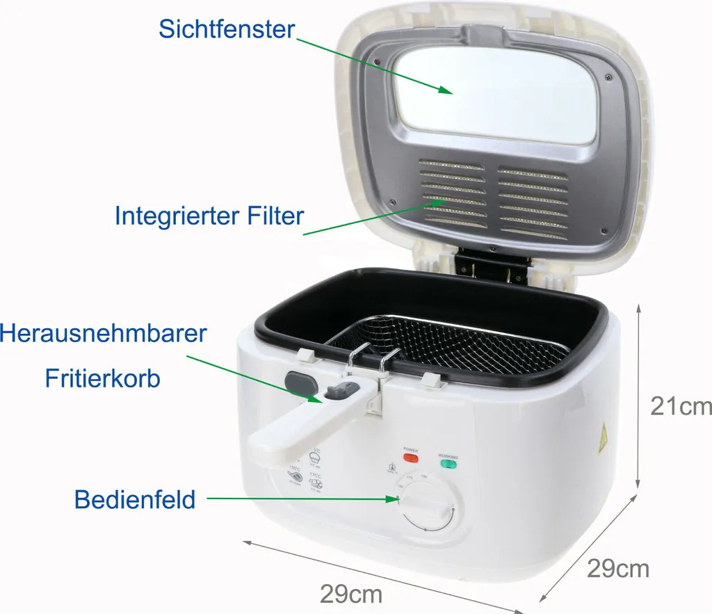 1 x DESKI Fritteuse Weiß, 1800 Watt, 2.5 Liter und Bedienungsanleitung