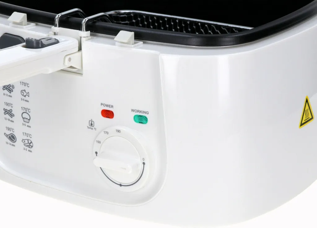 Die leistungsstarken 1800 Watt frittieren und backen Fleisch, Fisch, Pommes, Obst und Gemüse in kürzester Zeit. Durch die 3 einstellbaren Stufen von 150° – 190°C lässt sich die ideale Temperatur für Ihre Lebensmittel finden.