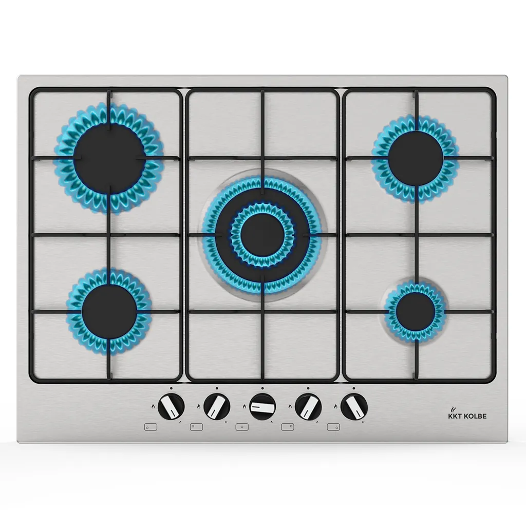 Das KKT KOLBE Gas-Kochfeld überzeugt durch eine hochwertige Verarbeitung und Funktionalität. Das Kochfeld verfügt über 5 Kochzonen. Der Wok-Brenner verteilt die Hitze gleichmäßig von der Mitte zu den Rändern und ermöglicht Ihnen den Einsatz von traditionellen Wokpfannen mit Rundboden und modernen beschichteten Pfannen. Die stufenlose Regelung aller Kochzonen stellt sicher, dass Sie immer bei der richtigen Temperatur garen und braten. Die emaillierten Topfträger sorgen für stabilen Halt für Ihre Töpfe und Pfannen und sind dazu rostfrei. Die Oberfläche aus hochwertigem Edelstahl sorgt für Qualität und Sicherheit und ist einfach zu reinigen.