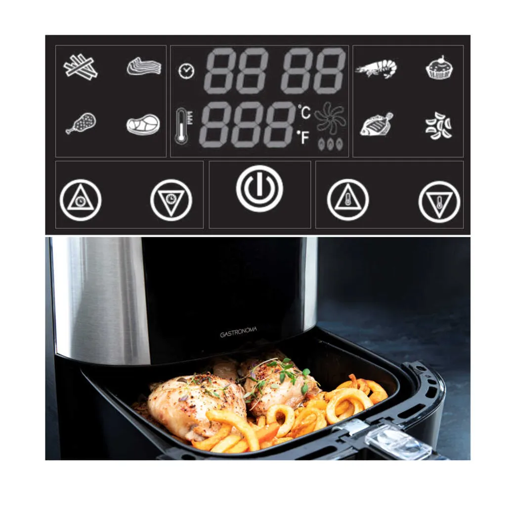 Mit der Gastronoma XXL Heißluftfritteuse verzichten Sie bei der Zubereitung von Speisen auf Fett und Öl. Aufgrund der innovativen Technologie werden Ihre Speisen in einem heißen Luftstrom mit einem optimalen Geschmackserlebnis zubereitet. Der Vorteil des Backofens liegt im effektiven Garraum, der die gewünschte Betriebstemperatur in Rekordzeit erreicht und somit den Kochprozess beschleunigt.