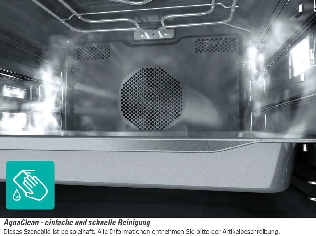 - 9 Heizarten: Heißluft, Ober-/Unterhitze, Großflächengrillen, Großflächengrillen mit Ventilator, Singlegrillen, Heißluft mit Unterhitze (Pizzastufe), Unterhitze mit Ventilator, Auftauen, Tellerwärmerfunktion