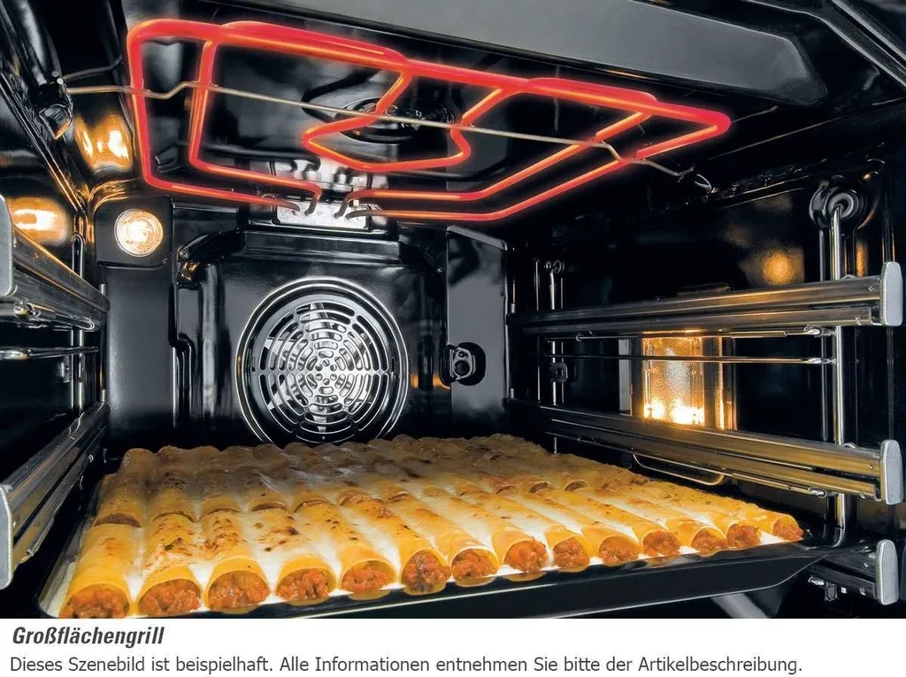 - 10 Heizarten: Heißluft, Ober-/Unterhitze, Großflächengrillen, Großflächengrillen mit Ventilator, Singlegrillen, Heißluft mit Unterhitze (Pizzastufe), Unterhitze mit Ventilator, Auftauen, Tellerwärmerfunktion