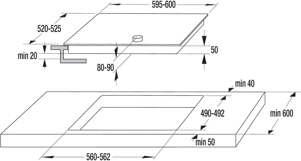 - Einbaumaße (B x H x T): 56 × 7 × 49 cm