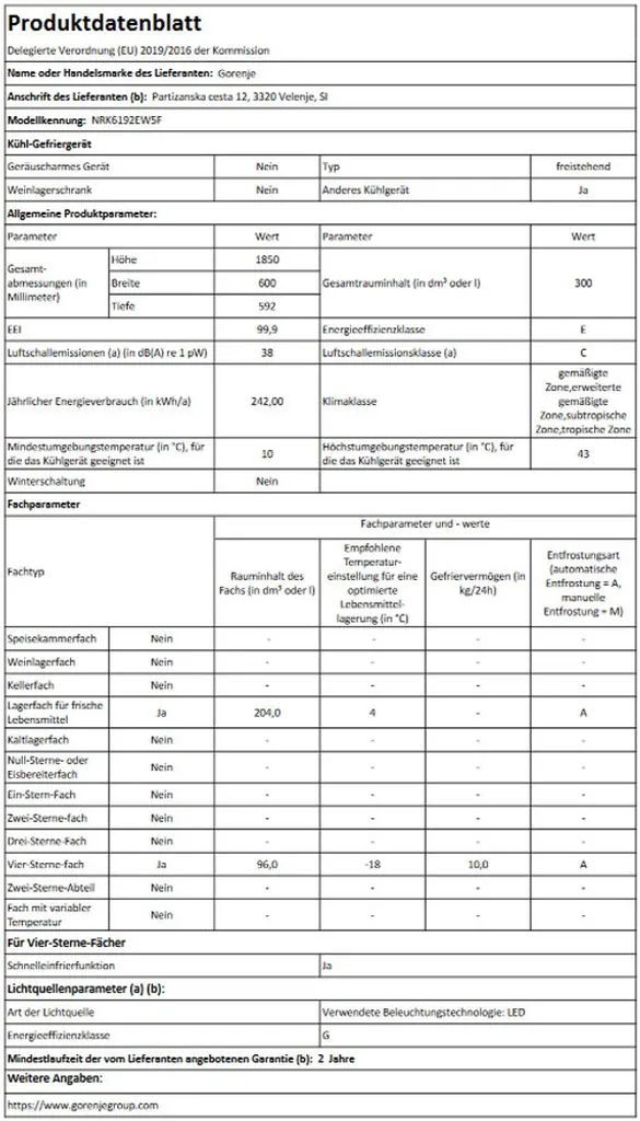 - Jahresenergieverbrauch in kWh: 242 kWh