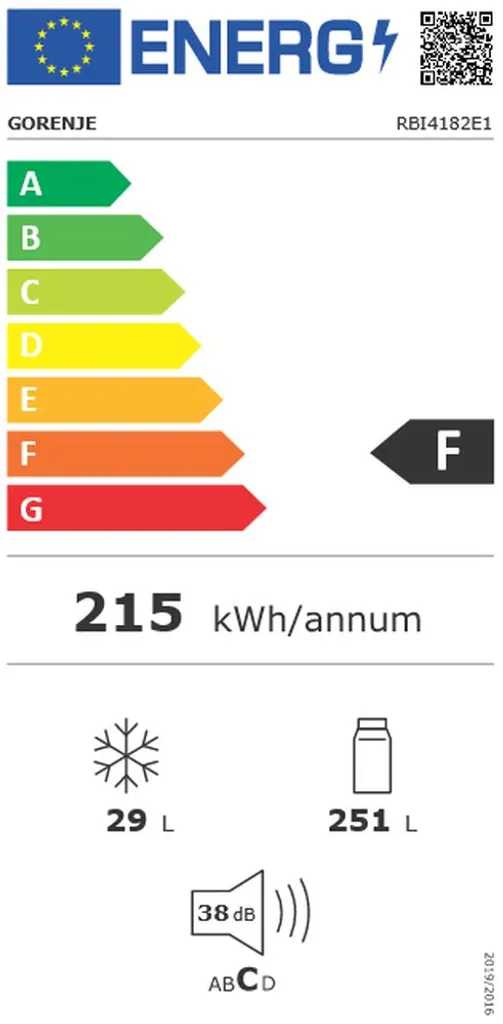 Gorenje Essential RBI4182E1 – Kühlschrank mit Gefrierfach – eingebaut – Nische – – Breite: 56 cm – Tiefe: 56 cm – Höhe: 177.5 cm – 280 Liter – – weiß