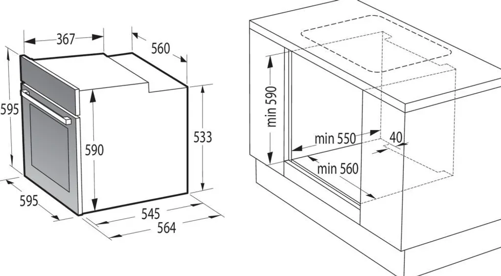 - Höhe der Nischengröße für die Installation min.: 590 mm