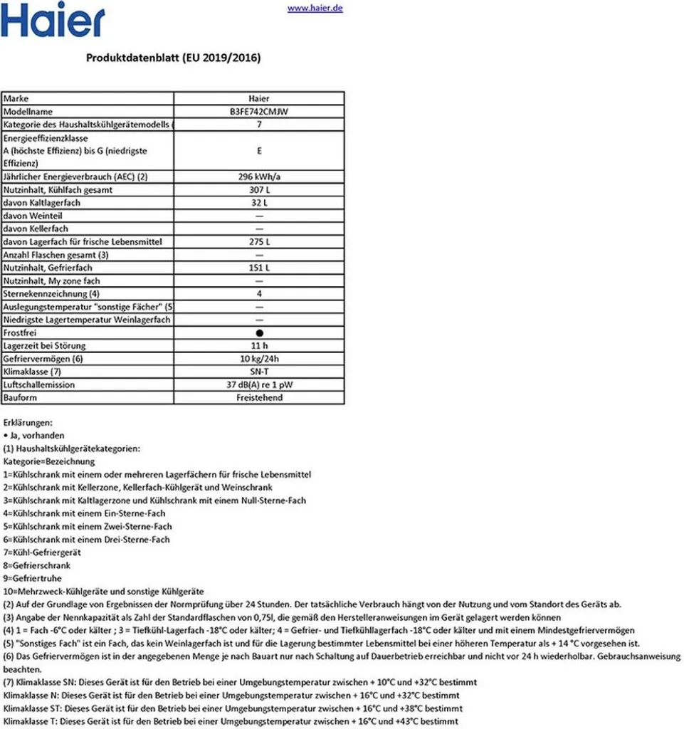 – Haier B3FE742CMJW Kühl-Gefrier-Kombination