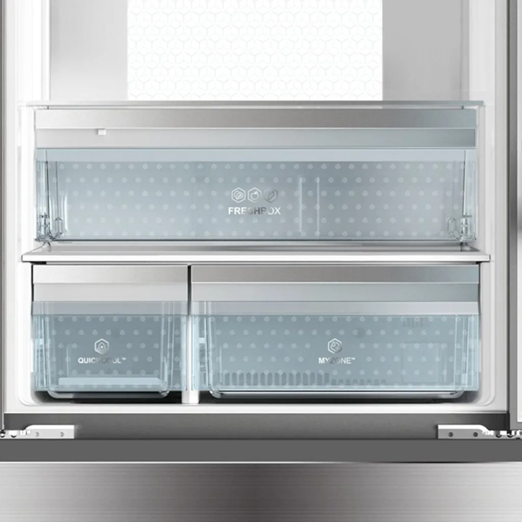 Eine weitere Kühl-Innovation von Haier: Die leicht zugänglichen Easy-Access-Gefrierschubladen machen es ganz einfach, das gewünschte Gefriergut ohne langes Suchen zu finden. Viel schneller, als bei einer herkömmlichen Tür mit Scharnier. Außerdem verhindert ihr ergonomisches Design, das kalte Luft durch geöffnete Türen entweicht, was bis zu 30 % Energie einspart.