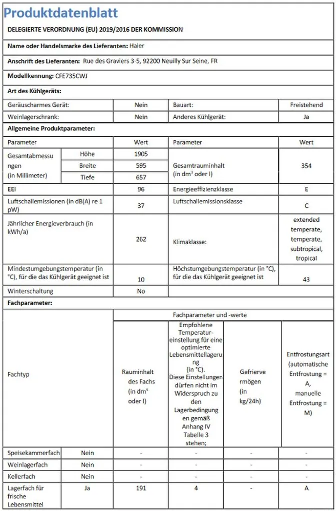 Haier CFE735CWJ Kühl-Gefrier-Kombination 190 cm 341 L Total No Frost (-D)