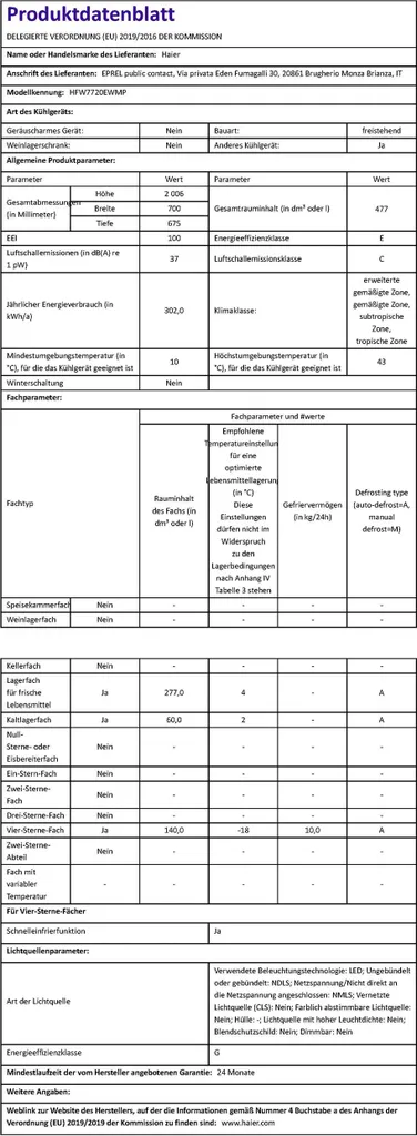 Haier HFW7720EWMP Kühl-Gefrier-Kombination 477 Liter NoFrost Smart Home (Skala A bis G)