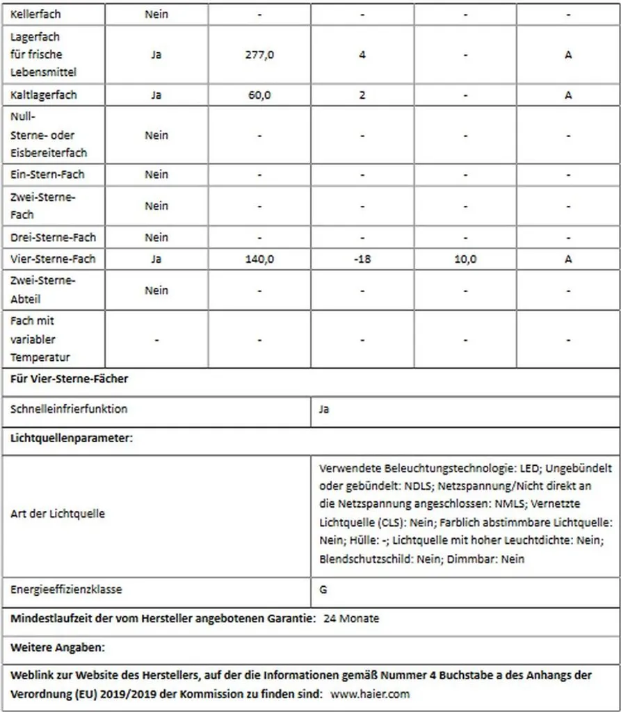 - Nettoinhalt Gefrieren 140