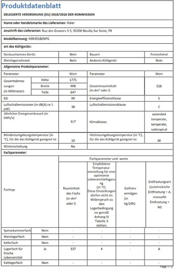 - Gefrierfach – Anzahl der Ablagen/Körbe: