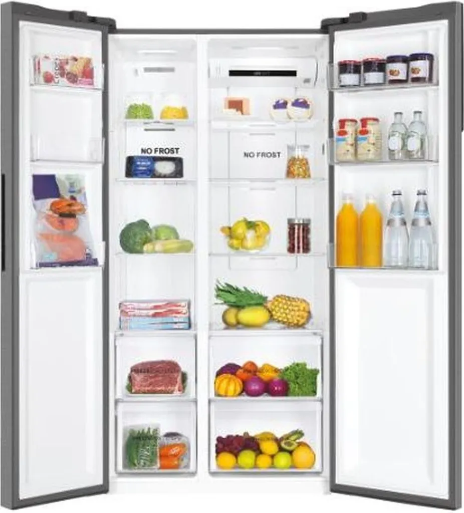 Effizient und leise für schnellere Kühlung: Side-by-Side-Kühlschrank mit großem Fassungsvermögen von 528 l. Ausgestattet mit einem Inverter-Motor, der zu einer deutlichen Reduzierung der Vibrationen führt und einen leisen Betrieb sowie eine schnelle und effiziente Kühlung ermöglicht.